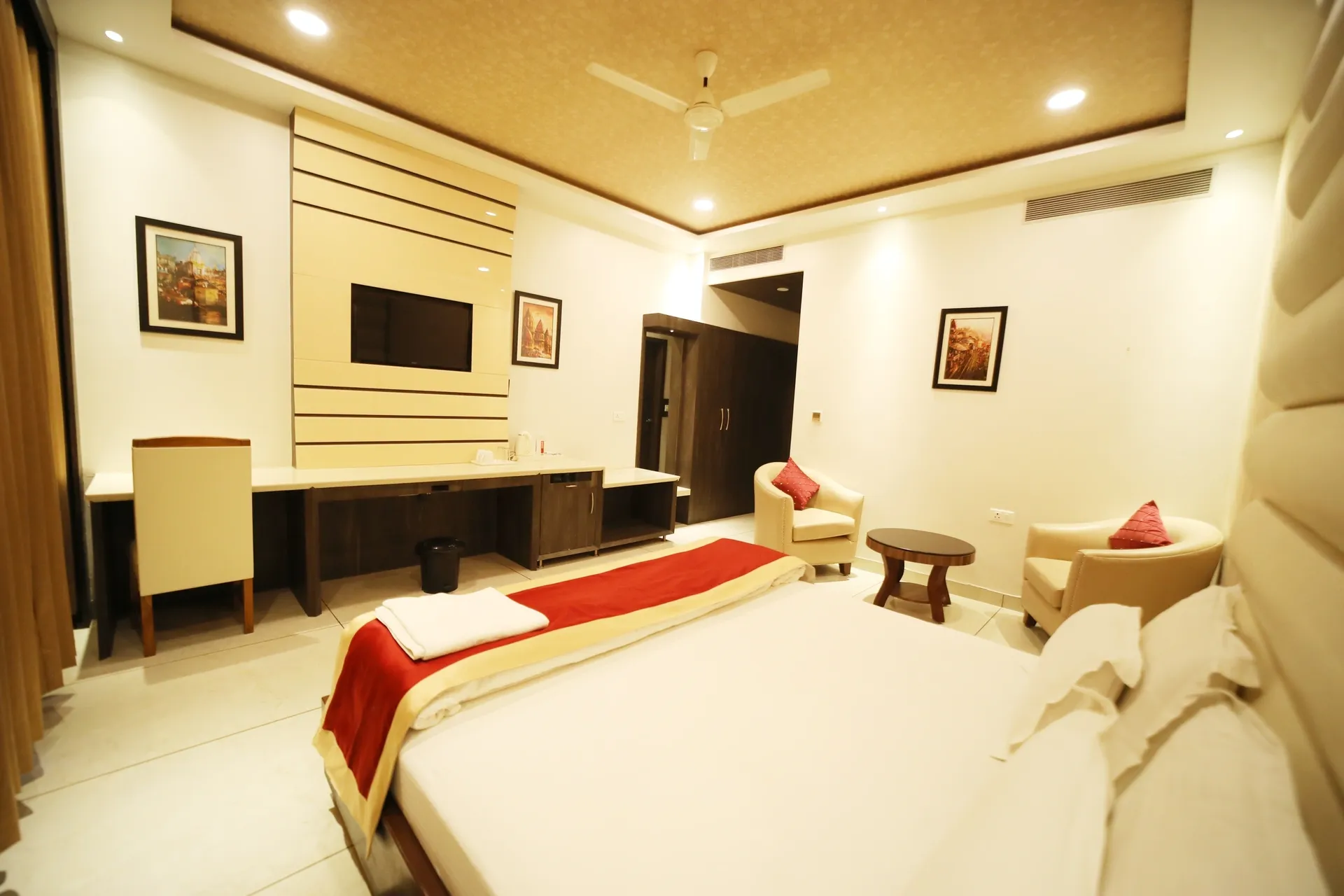 Welcome to a sanctuary of comfort and luxury – our Deluxe Rooms at Hotel Panchsheel, Ayodhya. Designed with meticulous attention to detail, these rooms offer a harmonious blend of modern sophistication and the charm of the Hotel Panchsheel, Ayodhya.